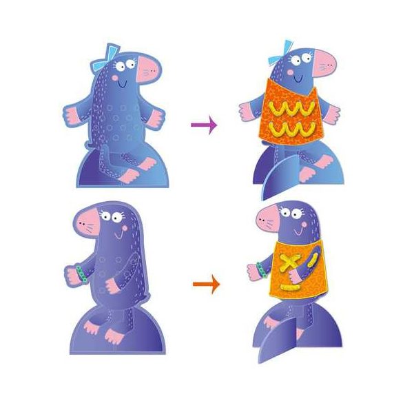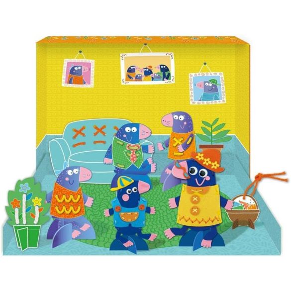 A dobozban található vakond figurákat ezután már önállóan is ki lehet varrni és 3D modelleket lehet belőlük készíteni. A doboz belseje egyben a vakond család otthona is, ahol különböző jeleneteket játszhatnak el a gyerekek.