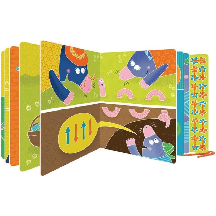A dobozban található egy varrós könyv, amely lépésről-lépésre mutatja be a varrási technikákat a vakond család segítségével. A könyv széle perforált, így az adott feladatokat egyből ki is lehet próbálni.