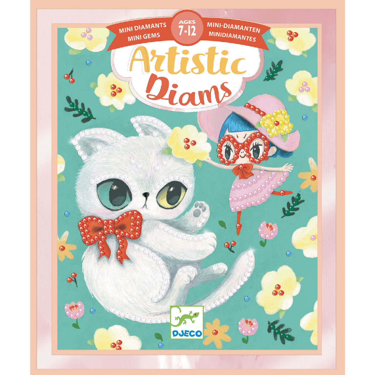 Ez a készlet 4 db illusztrált kártya díszítésére szolgál mini fazettált, gyöngyalakú strasszkövek sokaságával. A gyermek a mini strasszköveket a válogatótálcába önti, majd a füzetben található utasításokat követve a különleges eszközzel megfogja őket, hogy az előre kijelölt felületekre helyezze őket. Fokozatosan színesednek, csillognak a kirakott felületek, a strasszkövek domborodnak és ragyognak a fényben.