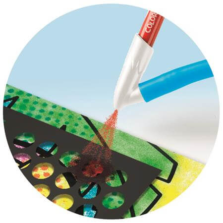 Készítsen csodálatos festékszóró hatásokat a fújós filcek és sablonok segítségével. 5 éves kortól.