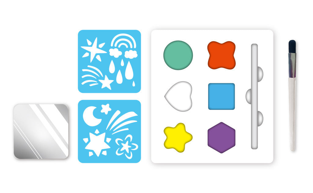 Az Avenir új arcfestő készletei 6 gyönyörű arcfesték színt, valamint 2 újrafelhasználható stencil sablont, egy ecsetet és egy tükörmatricát tartalmaznak.